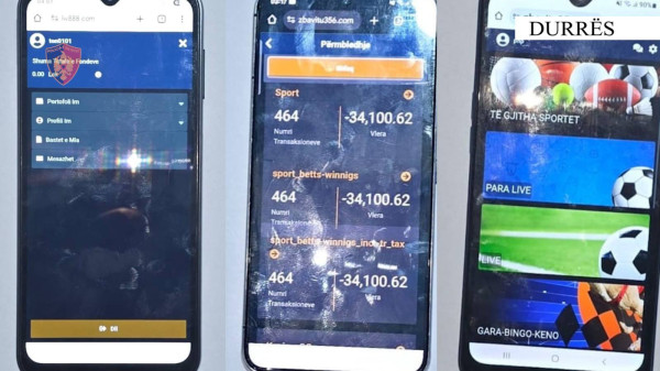 Policia e Shtetit ka arrestuar shtetasit me inicialet E. M. (41), dhe vëllezërit E. D. (37) dhe D. D. (42) për organizim të basteve sportive me telefona mobilë në lagjen 13 në Durrës, ndërsa procedohet penalisht një shtetas tjetër E.P. (39).
