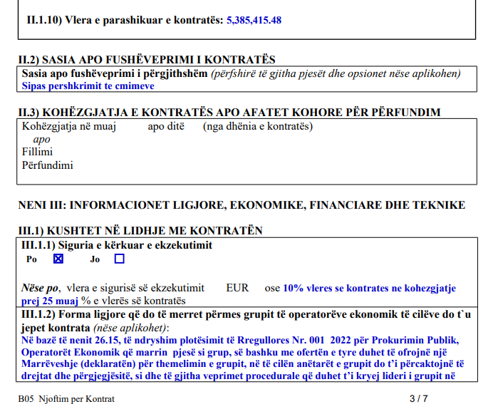 Vlera e parashikuar e kontratës kap shifrën 5,385,415.48.