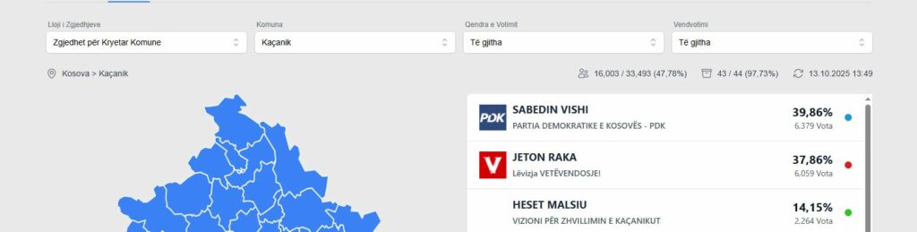 Sipas numërimit të votave nga ana e Komisionit Qendror të Zgjedhjeve në qytetin e Kaçanikut do të ketë balotazh.