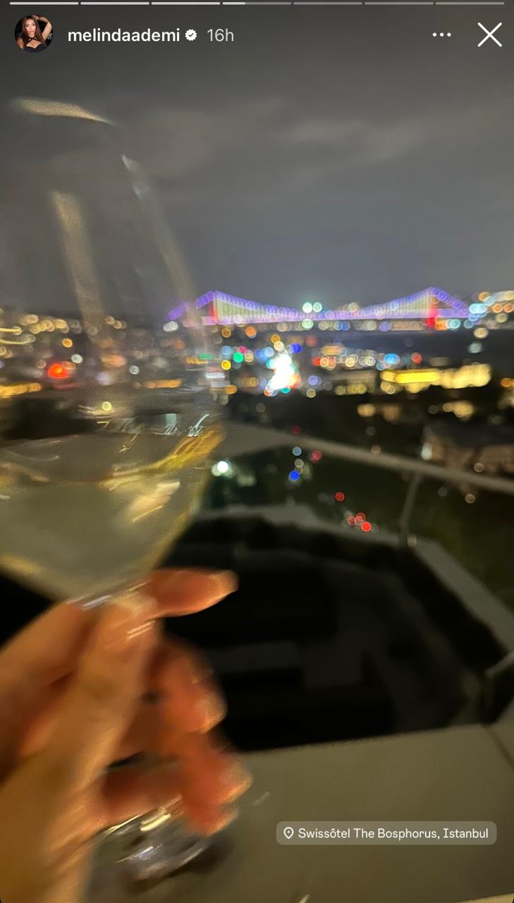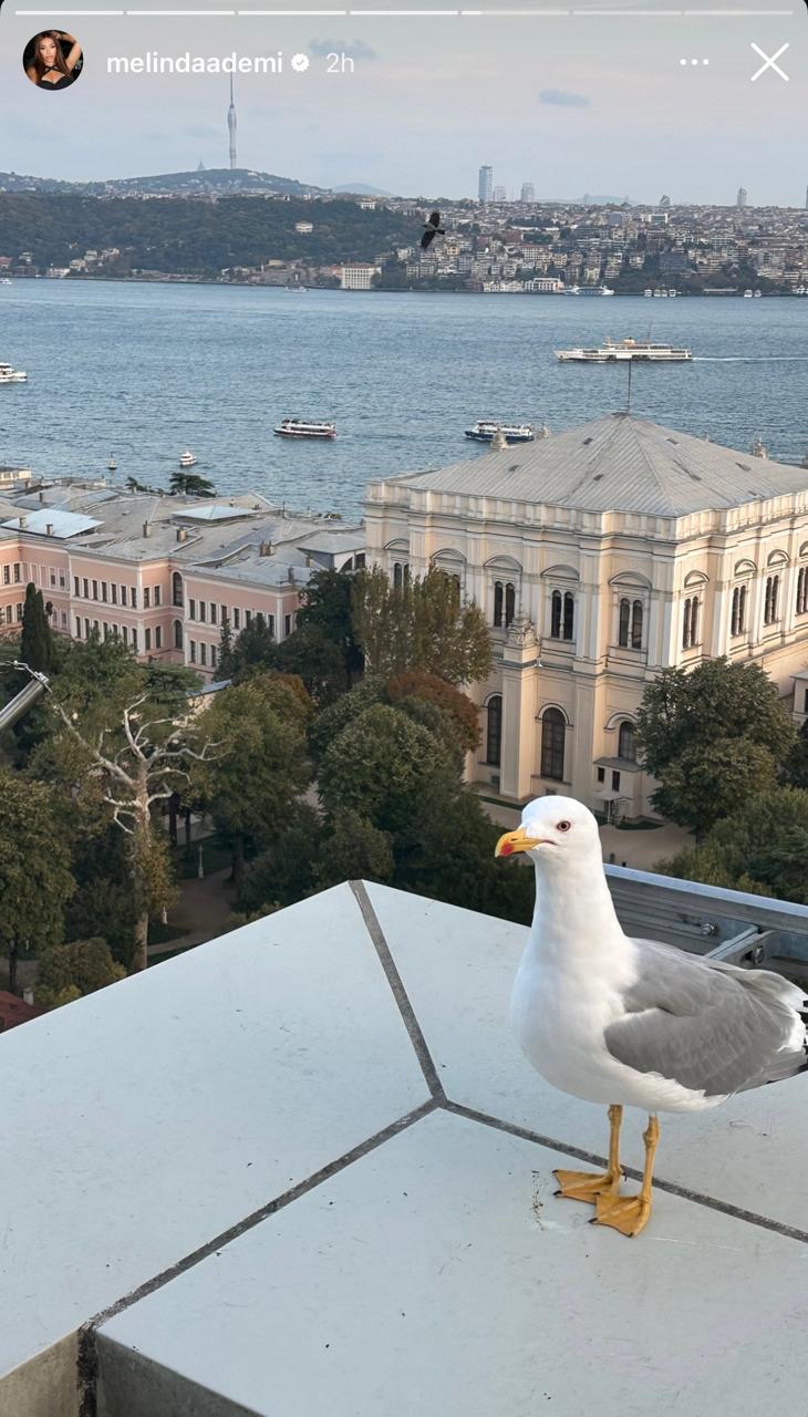 Në njërën prej storieve, këngëtarja shihet duke mbajtur një gotë vere përballë dritave të Stambollit, ndërsa një tjetër postim zbulon partnerin e saj, Granitin, buzëqesh teksa shikon Melindën.