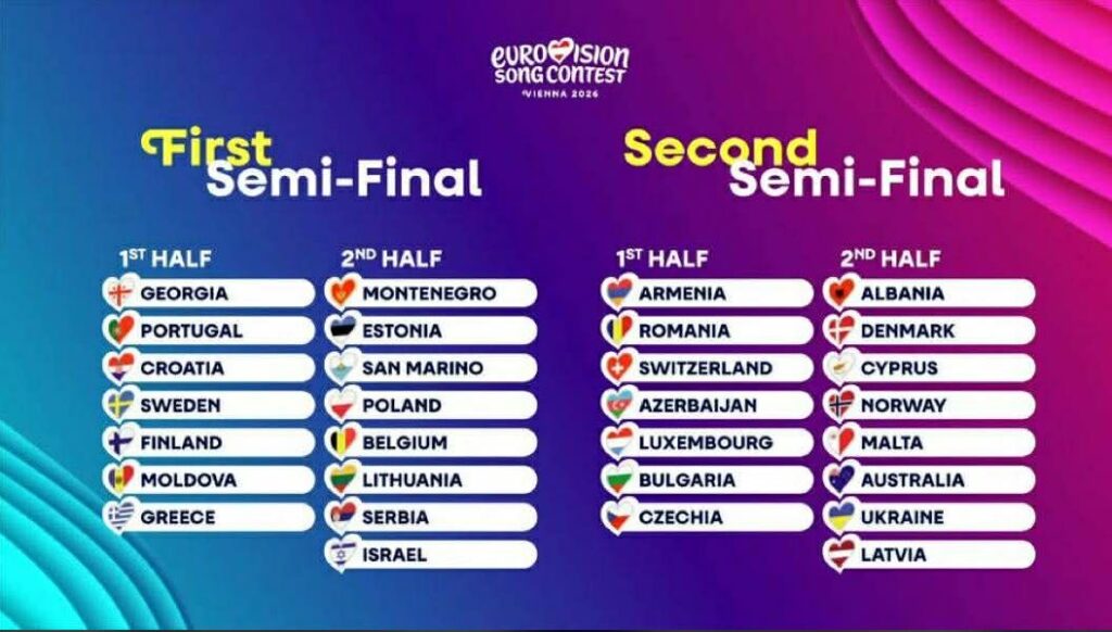 Gjatë kësaj mbrëmje është hedhur shorti i gjysmëfinales së Eurovision 2026.