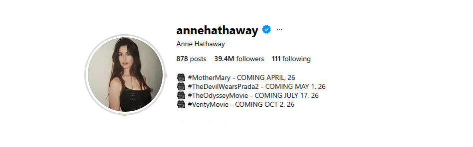 2026-ta viti i Anne Hathaway, aktorja njofton premierën e 4 filmave