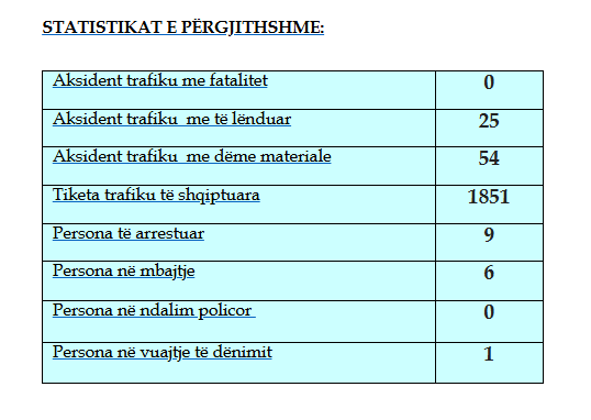 Gjatë këtyre 24-orëve, janë raportuar gjithsejt 79 aksidente, 25 prej tyre me persona të lënduar dhe 54 vetëm me dëme materiale.