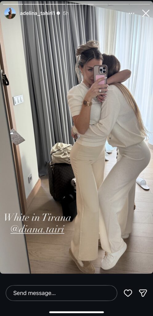 Në përshkrimin e fotos ka shkruar “White in Tirana”, duke e shoqëruar me ‘tagg’ motrën.