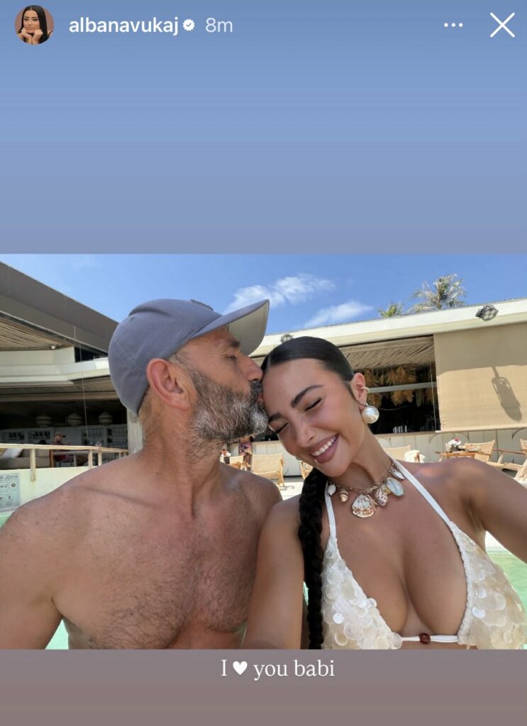 Ndërkohë, pak minuta më parë ajo ka publikuar një fotografi përkrah babait të saj.