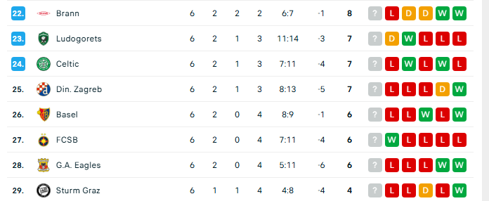 Dinamo Zagrebi ka shtatë pikë të grumbulluara në gjashtë xhiro dhe gjendet në pozitën e 25-të, vetëm një vend larg play-offit.