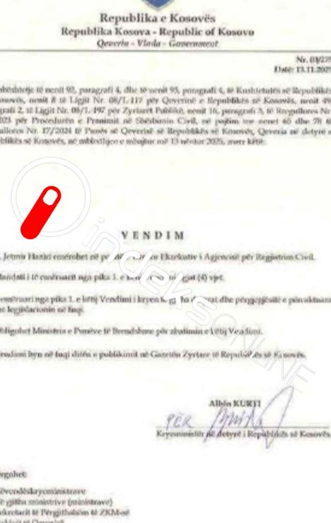 Vendimi është marrë nga ana e kryeministrit të Kosovës në detyrë, Albin Kurti.Sipas vendimit mandati i tij do të jetë katër vjeçar.