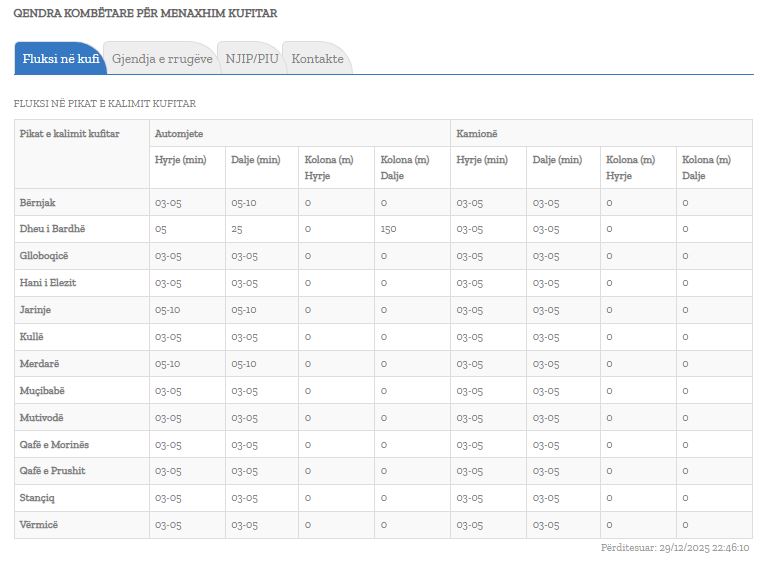 Qendra Kombëtare për Menaxhim Kufitar ka bërë përditësimin e të dhëna në pikat doganore.