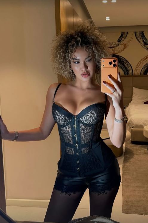 E veshur me një bust korse të zezë dhe pantallona të shkurtra prej materiali të ngjashëm me lëkurën, Arta ka vënë në pah linjat e saj perfekte dhe stilin e saj të dallueshëm.
