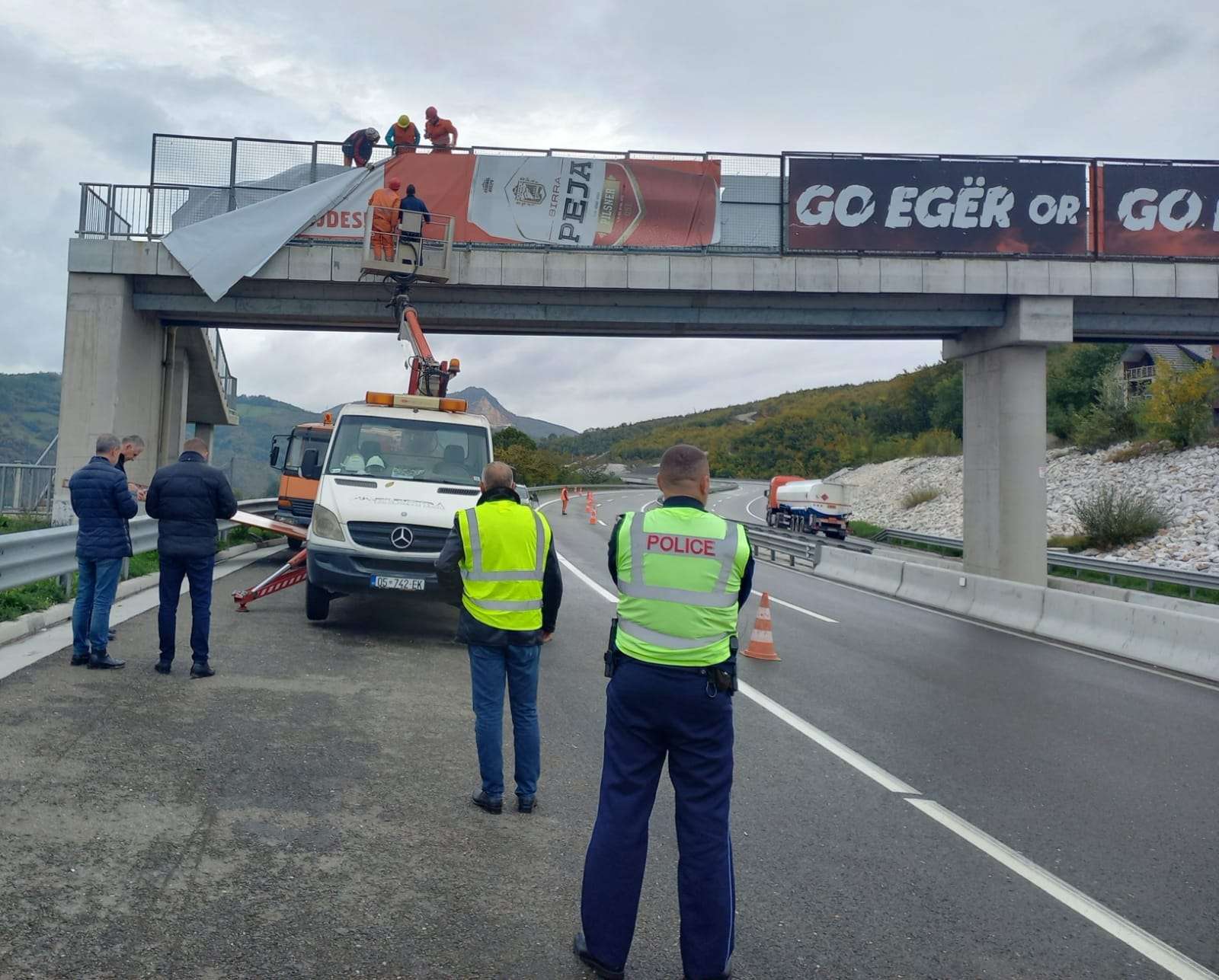 “Nga Inspektorët e Infrastrukturës rrugore të MMPHI-së janë larguar të gjitha panot reklamuese të vendosura në mbikalime dhe ura në R6, R7, N2 dhe N9. Aksioni është realizuar në muajin nëntor të vitit 2022 në bashkëpunim edhe me Policinë e Kosovës (Njësia e Trafikut Rrugor).
