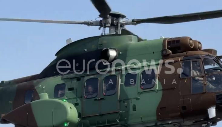 Dalin pamjet nga mbërritja e kryeministrit Edi Rama në Korçë me një helikopter të Forcave të Armatosura, ndërsa pas tij fluturonte edhe një helikopter tjetër privat.