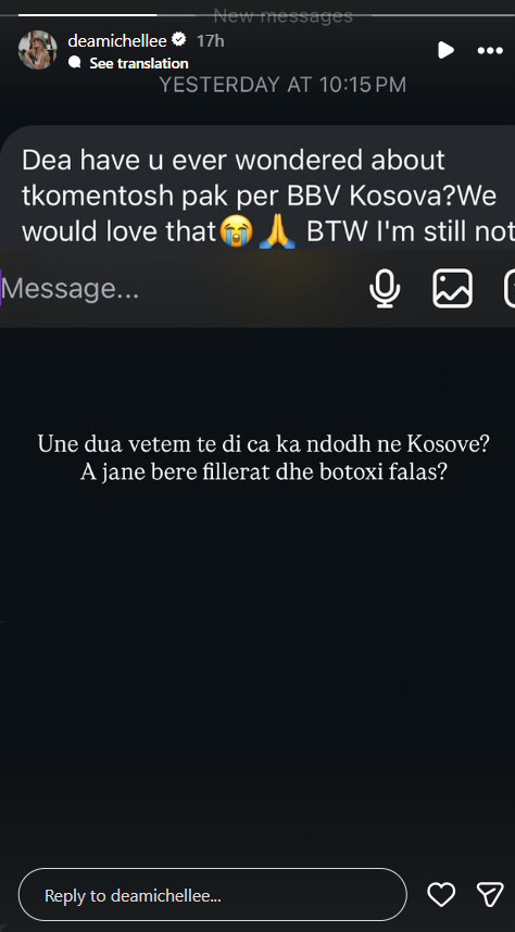 Teksa ndjekësit i kanë kërkuar ta komentoj këtë reality show, Dea ka pasur një tjetër pyetje, shkruan IndeksOnline.