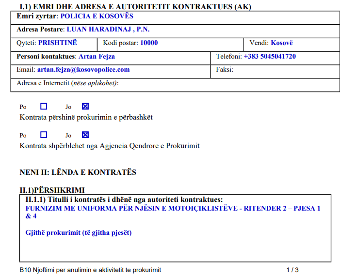 Policia e Kosovës ditë më parë përmes ri tenderit ka kërkuar që Njësia e Motoçiklistëve të furnizohet me uniforma.
