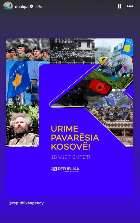 Dua Lipa ka uruar për 18-vjetorin e pavarësisë së Kosovës.