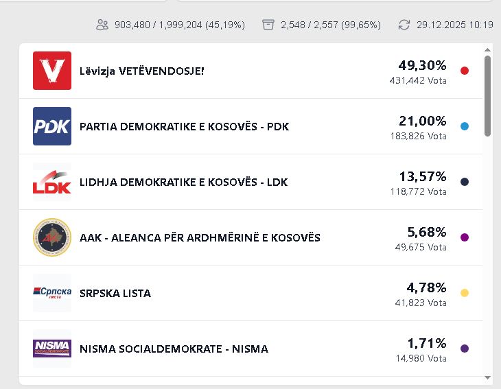 Deri tani janë procesuar 99.65 për qind e vendvotimeve dhe se pa u numëruar kanë mbetur vetëm 9  vendvotime.