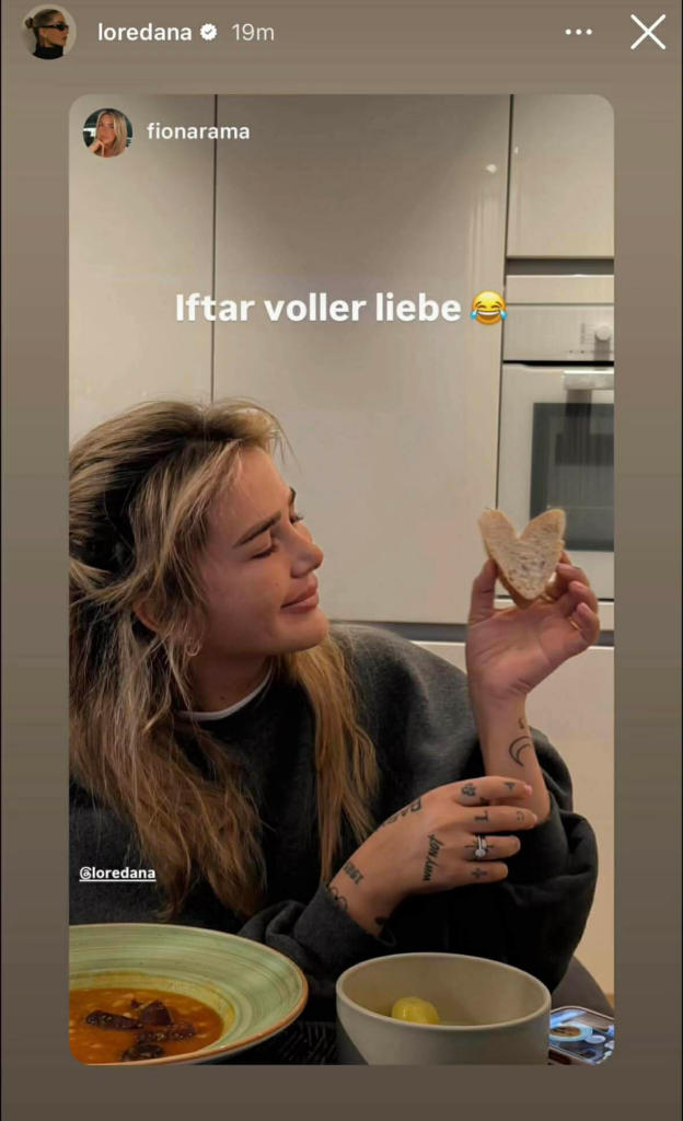 Në mesin e tyre është edhe shoqja më e ngushtë e Lorit, Fiona, e cila sonte e ftoi për iftar reperen.