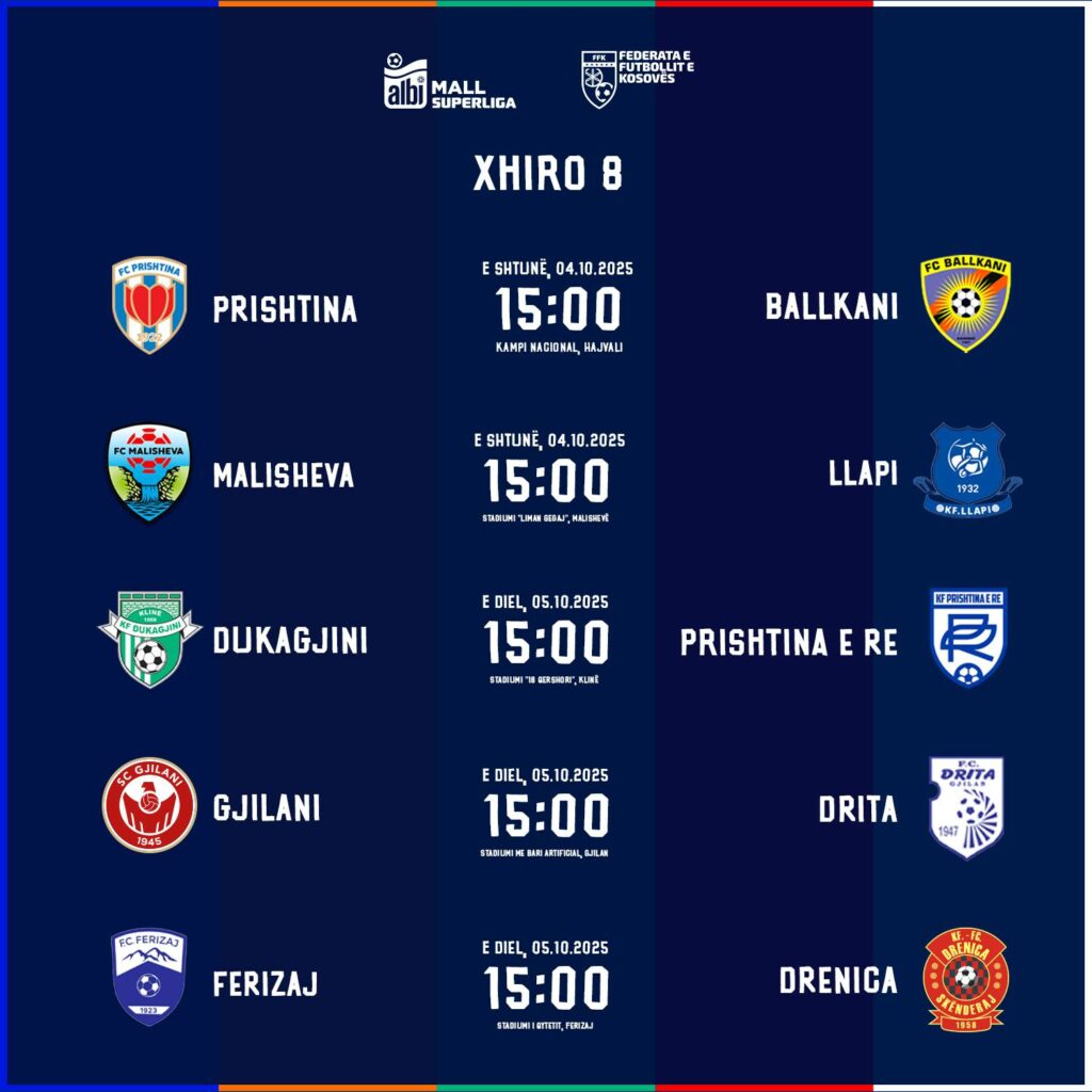 Federata e Futbollit të Kosovës ka publikuar ndeshjet e javës së tetë të Superligës.