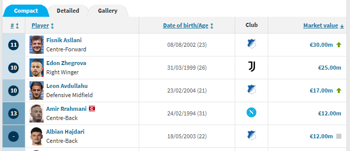 Kujtojmë se lojtari i dytë me vlerën më të lartë te Kosova është Edon Zhegrova (25 milionë euro)./Indeksonline/