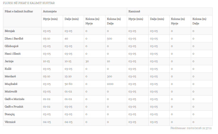 Qendra Kombëtare për Menaxhim Kufitar ka përditësuar të dhënat mbi fluksin në pikat kufitare.