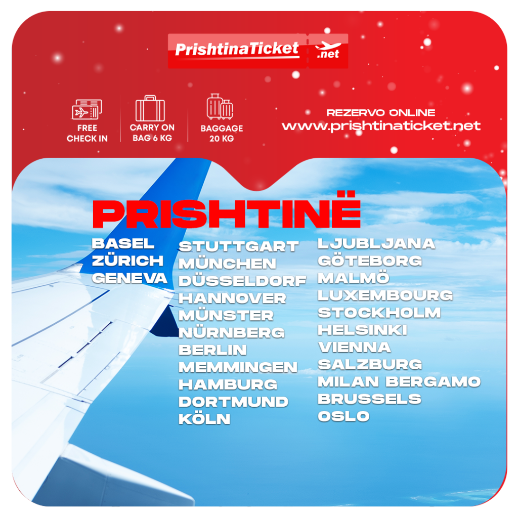 Fluturoni drejt mbi 25 qyteteve europiane dhe niseni Vitin e Ri pa stres, qoftë duke ardhur në Kosovë apo duke udhëtuar nga Kosova drejt Zvicrës, Gjermanisë, Luksemburgut, Skandinavisë apo Ljubljanës.