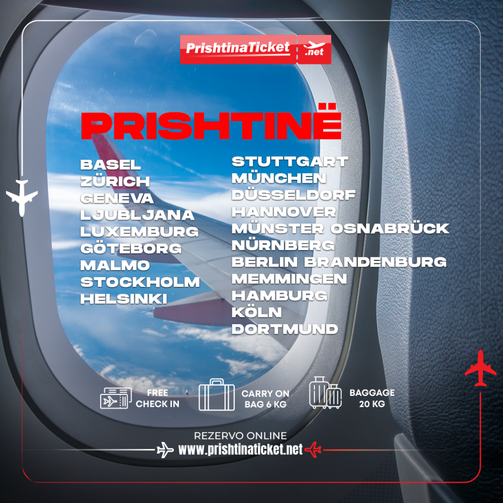 Nëse planifikoni një fluturim drejt Kosovës ose nga Kosova për në Zvicër, Gjermani, Luksemburg, Skandinavi apo Ljubljanë – zgjidhja më praktike është PrishtinaTicket.