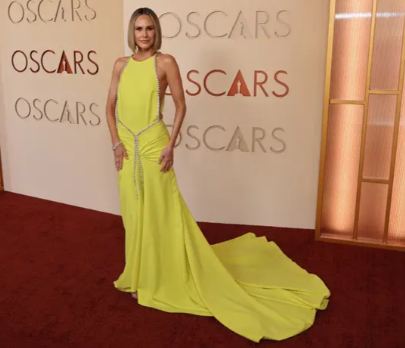 Sezoni i gabuar! Ylli televiziv Keltie Knight dukej sikur po shkonte me pushime verore në vend të tapetit të kuq të Oscarëve, e veshur me një fustan të ndritshëm të verdhë neoni me një dekolte të thellë dhe detaje të shndritshme rreth belit. Fustani ishte i hapur në pjesën e pasme dhe ajo e kombinoi pamjen me këpucë të ngushta me gurë të çmuar.