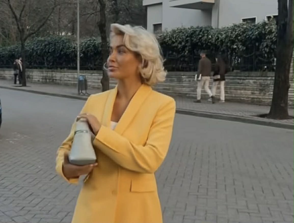 Këtë herë, bukuroshja bjonde është shfaqur në një fustan të gjatë ngjyrë vishnje, shkruan IndeksOnline.