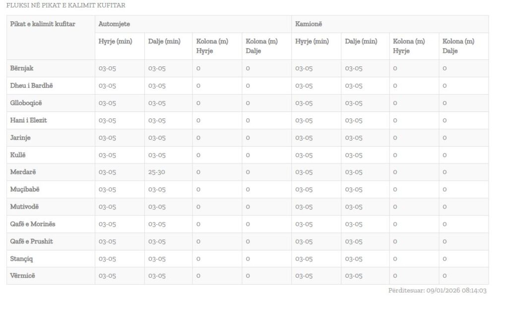 Qendra Kombëtare për Menaxhim Kufitar, i ka përditësuar të dhënat për pritjet në pikat kufitare.