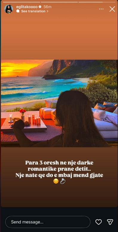 “Para 3 orësh, në një darkë romantike pranë detit… një natë që do ta mbaj mend gjatë,” shkroi ajo, shoqëruar me një emoji unaze, shkruan Indeksonline.