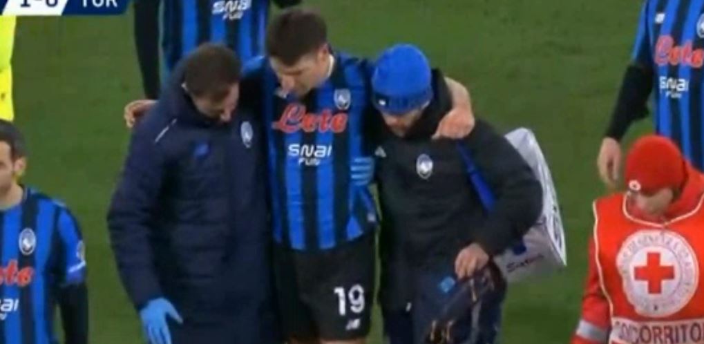 Mbrojtësi i Atalantës nuk mund të vazhdonte më e kësisoj, u detyrua të linte fushën e lojës i mbajtur nga krahët, duke çaluar dhe mes dhimbjeve, për të shkuar direkt në dhomat e zhveshjeve të stadiumit,