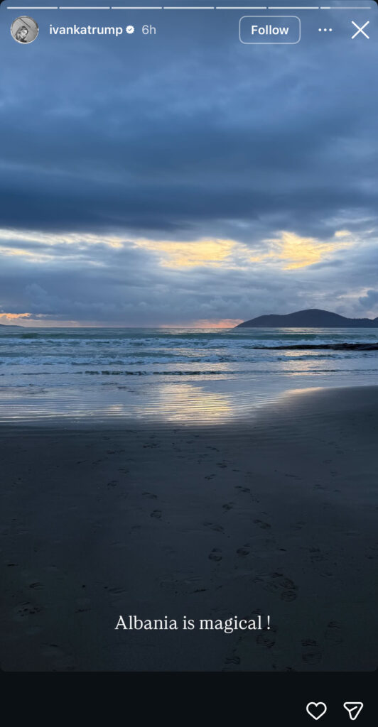 Më herët, Ivanka kishte publikuar edhe pamje të tjera nga turi i saj në jug të vendit. Në to shfaqen peizazhe natyrore, si deti dhe gjelbërimi i zonës, si dhe pamjet nga larg të ishullit të Sazanit. Përveç kësaj, në sfond të disa postimeve, ajo ka zgjedhur këngën shqiptare “Luleborë”.