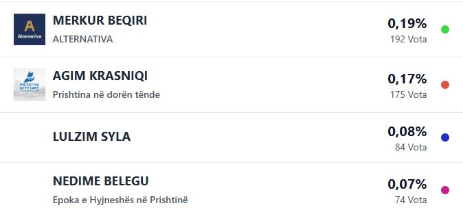 Këta kandidatë nuk morën as 1% të votave për kryetar/e të Prishtinës