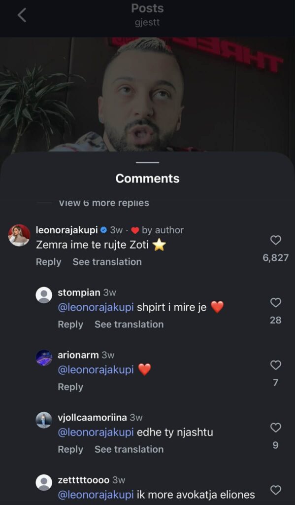 Komenti i Leonora Jakupit për Gjestin, që mori shumë vëmendje: Zemra ime …(Foto)
