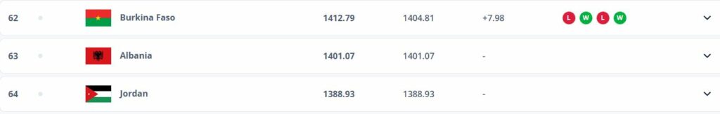 Ndërsa Kombëtarja Shqiptare, nuk pati ndonjë ndryshim pasi që mbetet në pozitën e 63-të.