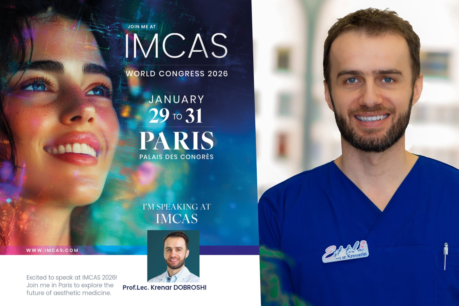 Krenar Dobroshi do të marrë pjesë si ligjërues në IMCAS – International Master Course on Aging Science, kongresi më prestigjioz në botë në fushën e mjekësisë estetike, që zhvillohet në Paris me datë 30 janar.