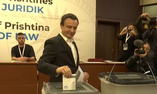 Kryeministri në detyrë, Albin Kurti, ka votuar në qendrën e votimit në Fakultetin Juridik në Prishtinë.