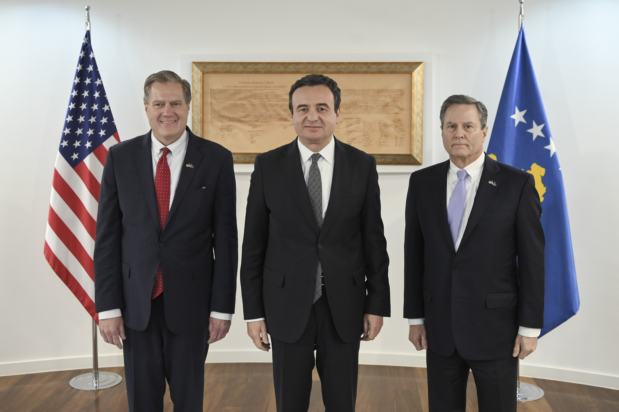 Kryeministri në detyrë i Republikës së Kosovës, Albin Kurti, i shoqëruar nga zëvendësministrja në detyrë e Punëve të Jashtme dhe Diasporës, Liza Gashi, mirëpriti sot një delegacion të Shteteve të Bashkuara të Amerikës, të përbërë nga kongresisti republikan Mike Turner dhe kongresisti demokrat Donald Norcross. Të dy kongresistët janë pjesë e Asamblesë Parlamentare të NATO-s dhe të Komitetit të Shërbimeve të Armatosura të Dhomës së Përfaqësuesve (House Armed Services Committee), dhe kanë luajtur rol të rëndësishëm në angazhimin ushtarak të ShBA-së në lidhje me NATO-n dhe më gjerë.
