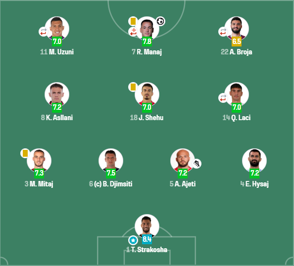 Faqja e njohur “Sofascore” e ka vlerësuar portierin, Thomas Strakosha – si më të mirin në ndeshje.