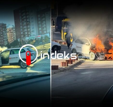 Digjet një autotaxi në Prishtinë (Pamje)
