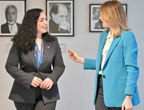 Osmani takohet me Metsolën, publikon pamje ku në sfond shihet fotografia e Rugovës
