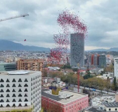 Flamuri kuqezi dhe tullumbacet pushtojnë qiellin e Tiranës në Ditën e Pavarësisë