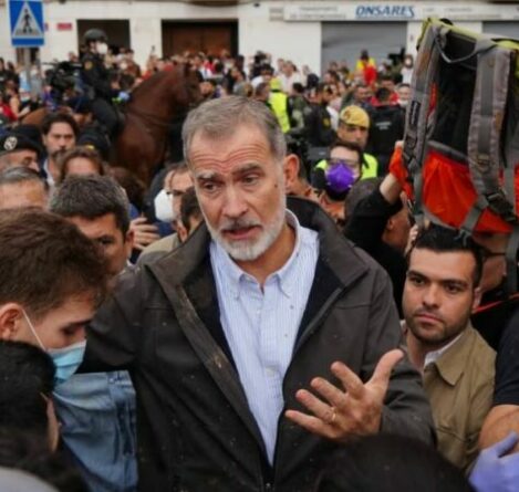 “Vrasës! Turp!”/ Përmbytjet në Valencia, Mbreti Felipe VI i Spanjës sulmohet nga turmat e inatosura, goditet me baltë
