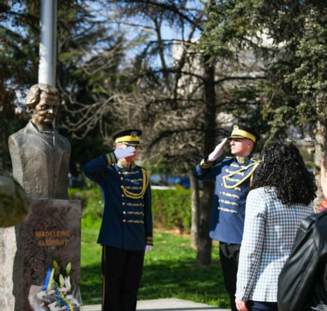 Osmani bën homazhe te busti i Albrightit: Do ta kujtojmë gjithmonë kontributin për lirinë e demokracinë tonë