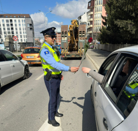 Policia në Gjakovë dhuron lule për gratë në festën e 8 Marsit