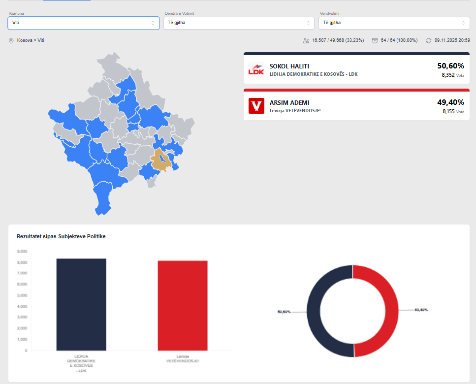 Me një dallim të vogël në vota, kandidati i LDK-së, Sokol Haliti është shpallur fitues në Komunën e Vitisë, sipas rezultateve të KQZ-së, raporton IndeksOnline.