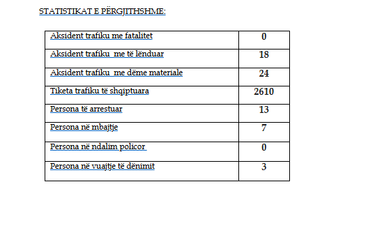 Po ashtu njoftohet se, kanë ndodhur 24 aksidente me dëme materiale, dhe 18 me të lënduar.