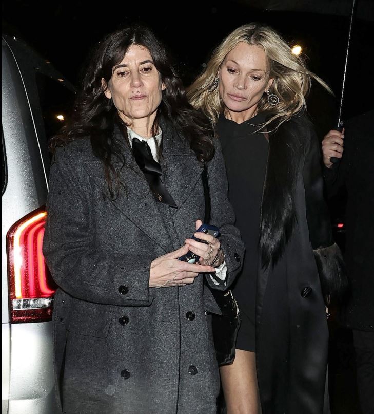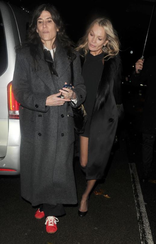 Moss mbërriti në festë me një fustan të shkurtër të zi, të cilin e veshi me një pallto të zezë me lesh dhe taka në të njëjtën ngjyrë./Indeksonline/