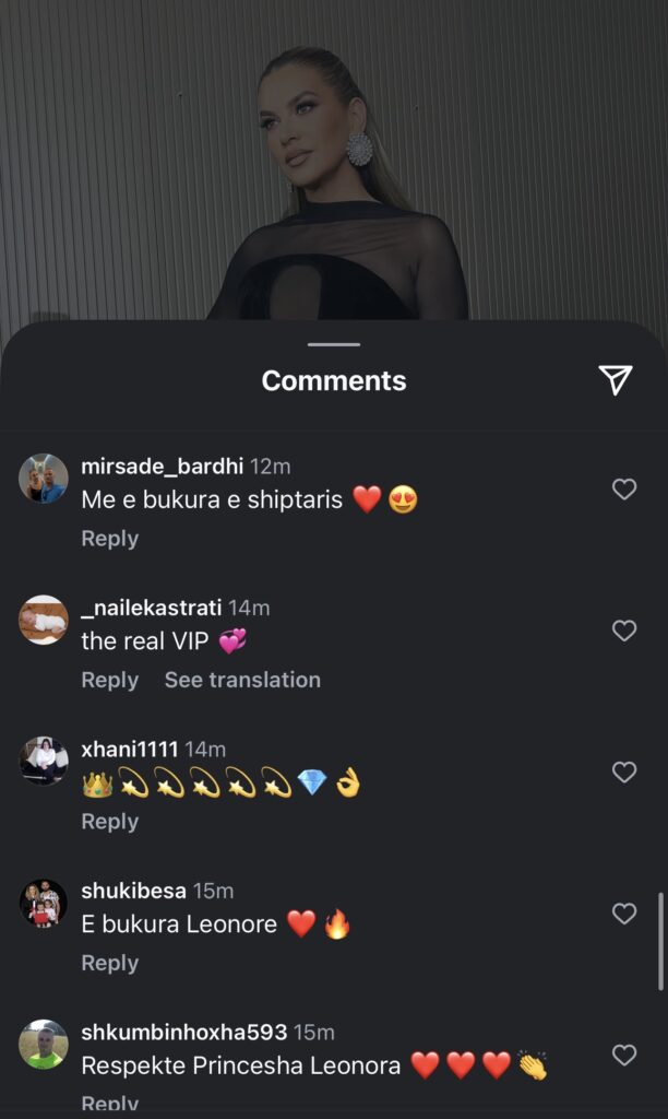 Sot, një ditë pas “Prime”, Leonora ka pranuar një numër të madh komentesh nga ndjekësit, të cilët e kanë përgëzuar për performancën dhe analizat e saj në lidhje me dinamiken brenda shtëpisë së famshme.