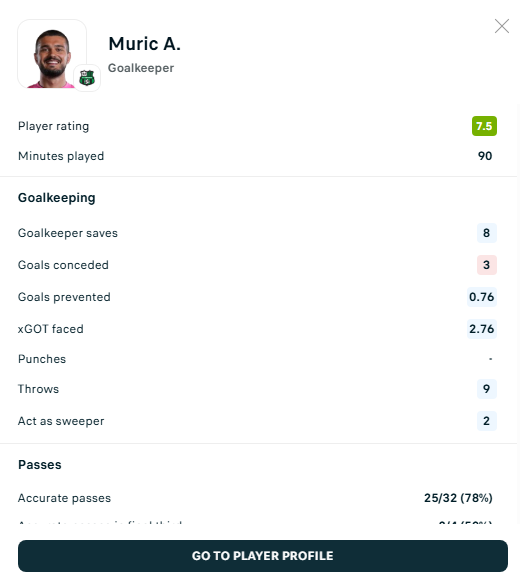 Edhe pse mori tri gola, Aro Muriq mbrëmë ishte fantastik – duke bërë tetë mbrojtje.