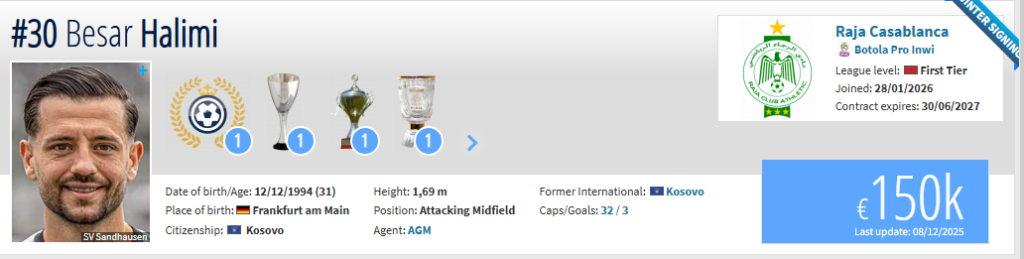 Halimi ka nënshkruar me klubin, Raja Club Athletic nga Maroko, shkruan Indeksonline